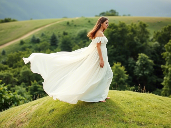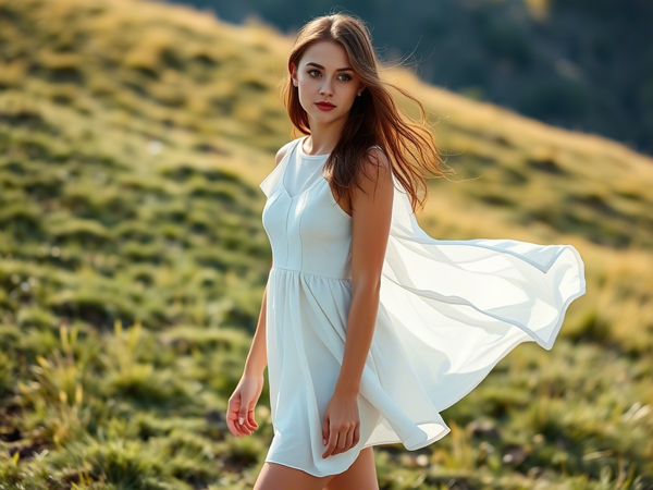 • Платье на девушке должно быть легким, но достаточно длинным и развевающимся под порывами ветра. Это усиливает романтичность образа.