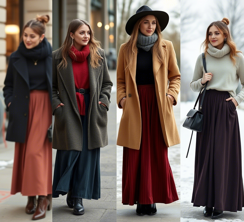 • Любая юбка - и длинная, и до колен - должна быть пышной. Это не только стильно, но и тепло.