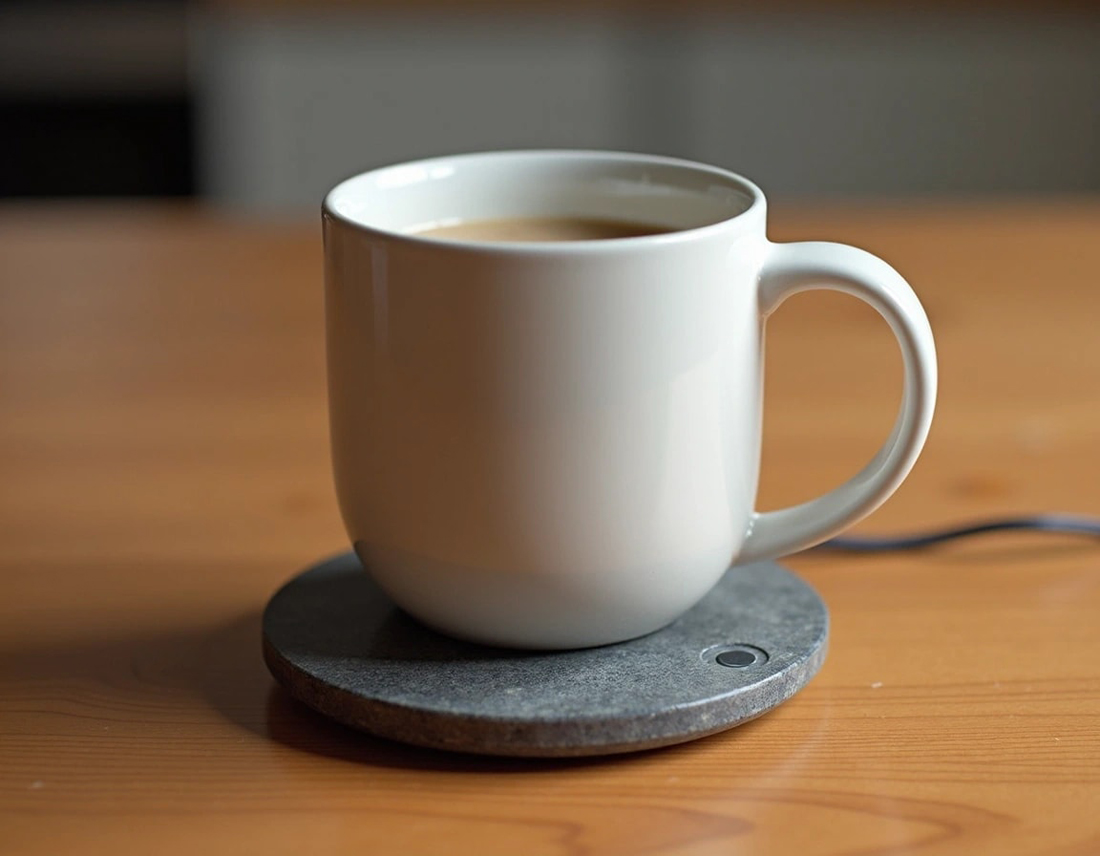 3. Кружка с подогревом и беспроводной зарядкой. Подарит немного бодрости и владельцу, и его смартфону;